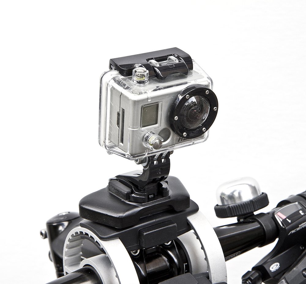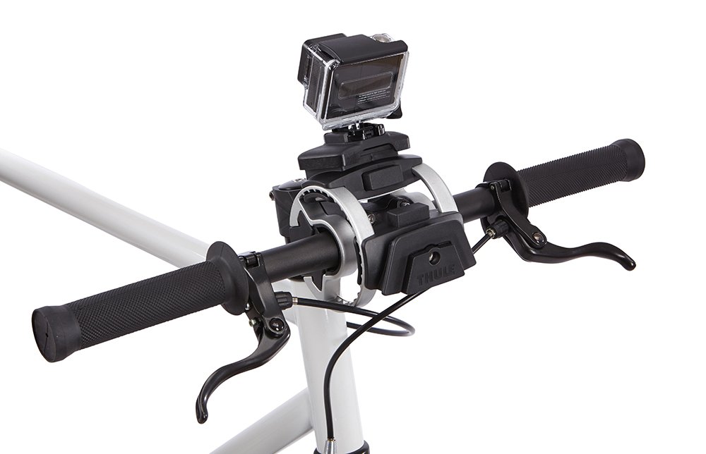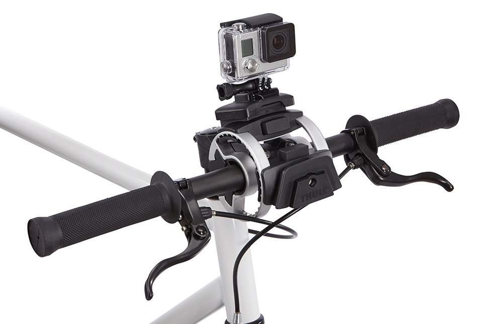 Držalo zlahka pritrdimo na Thulejev nosilec za krmilo. Nanj pa lahko pritrdimo vse kamere, ki imajo ustrezen adapter za pritrjevanje.