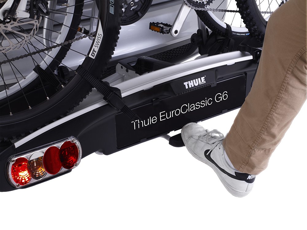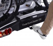 Ekskluziven razširljiv prtljažnik nosi do tri kolesa (za tretjega rabite dodaten nosilec). Nosilnost do 25 kg za kolo, kar omogoča prevoz e-koles. Prtljažnik za kolesa je izdelan s pritrditvenimi pasovi z zaponkami in enoročno spojnico za večjo stabilnost. Širok kot nagiba omogoča odpiranje tudi zelo velikih zadnjih vrat (npr. pri VW T5), tudi ob treh naloženih kolesih. Prtljažnik za kolesa se zaklepa na vlečno kljuko in je primeren za vse vrste koles.